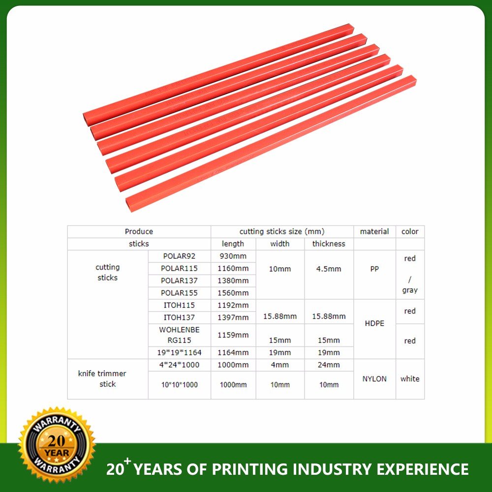 For all paper cutters and some knives pad machines.According to the different material of knife, the user can choose the relevant sticks, it has PVC HDPE, NYLON available. The size is exact and it can be used long. The general size is in stock, the special size can be ordered.